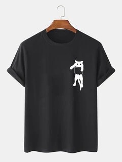 Mens Cartoon Cat Chest Print Cotton Casual Short Sleeve T-Shirts