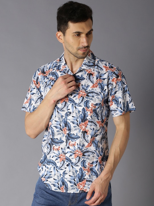 Bene Kleed Men White & White Slim Fit Printed Casual Shirt